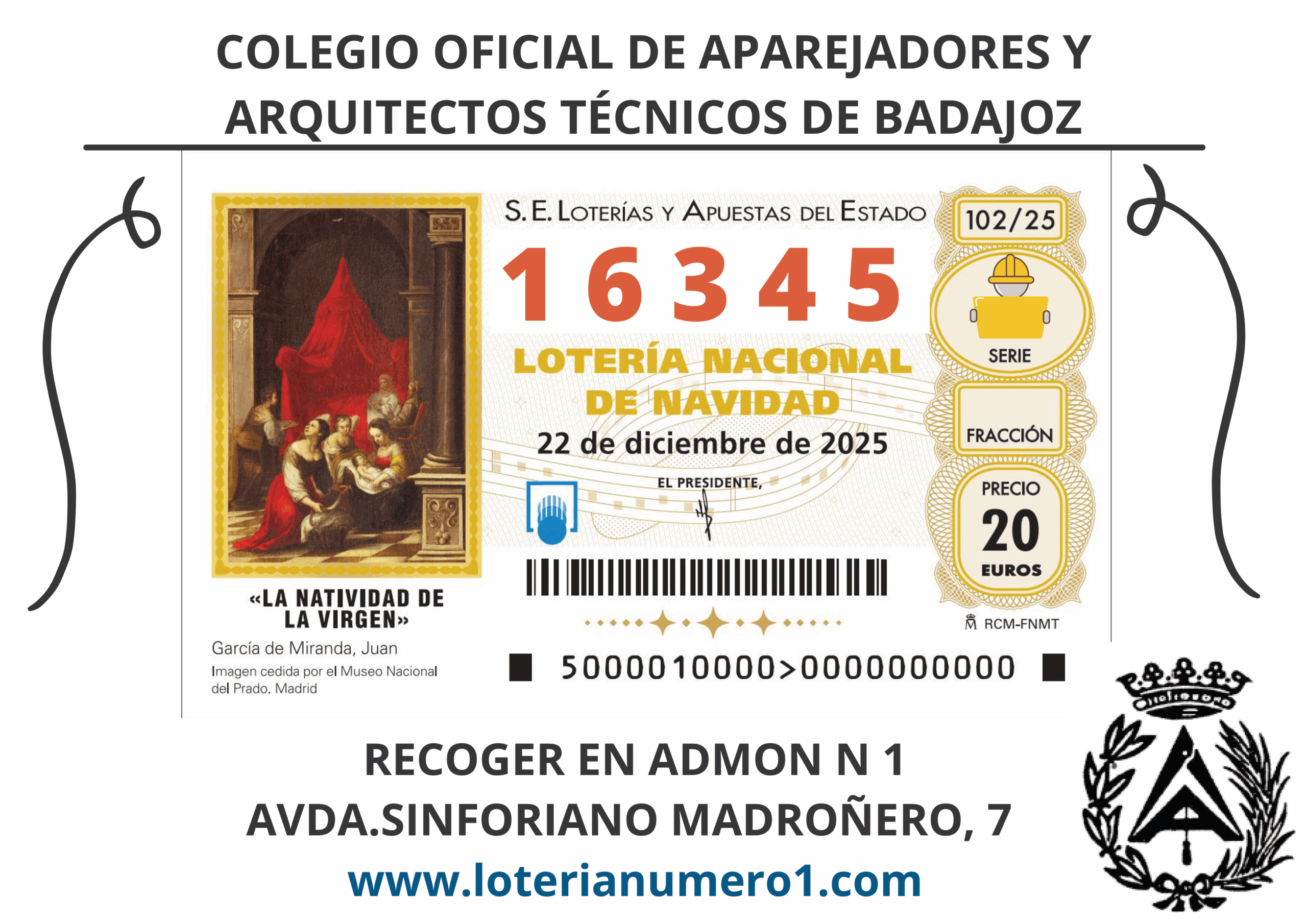Os informamos de que el número de lotería de Navidad que juega el Colegio todos los años, ahora se adquieren directamente en la Administración de Loterías Nº1 sito en Avd. de Sinforiano Madroñero, 7 C.P. 06011 Badajoz. Teléfono 924224601.